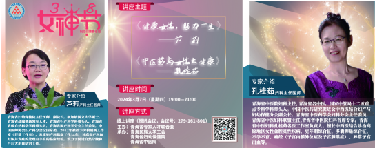 3月7日晚,由青海省专家人才联合会主办,校工会承办的“健康女性,美丽一生”及“中医药与女性大健康”两个专题讲座开讲,青海省妇幼保健院主任医师、副院长芦莉和青海省中医院主任医师、妇科主任孔桂茹细致讲解妇女健康知识,我校部分女教职工线上听讲,进一步提高了女性健康知识水平。
