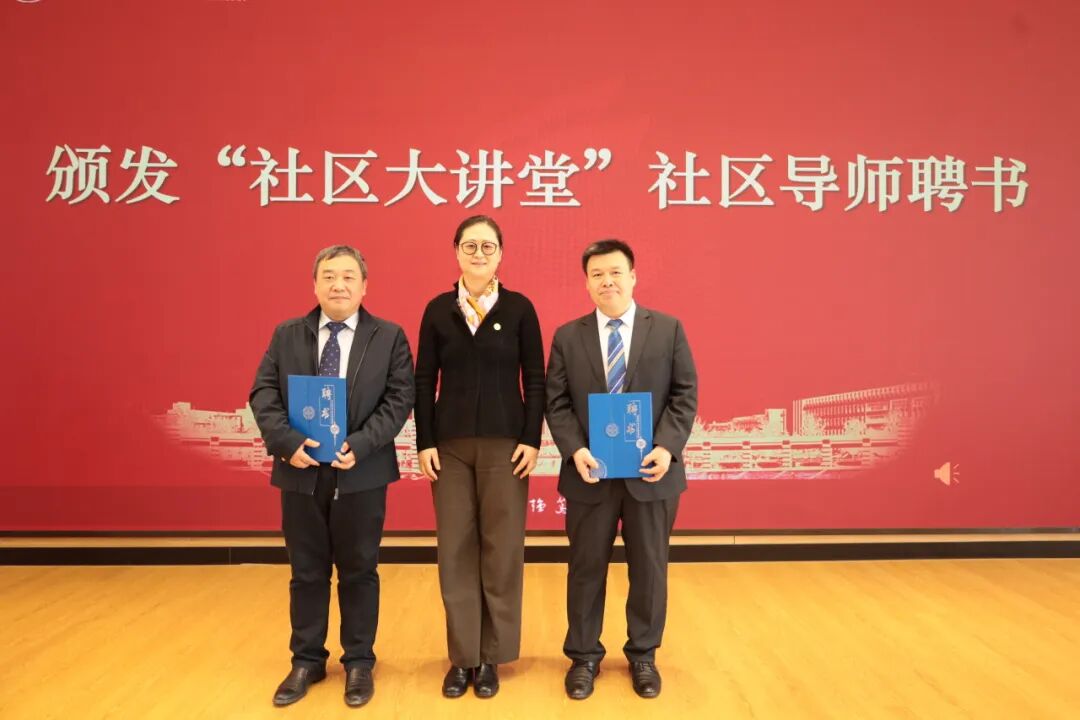 学校在“一站式”学生社区建立“社区导师工作站”,校党委副书记赵璟为张建军、田希亮、张友鹏校友颁发社区导师聘书。