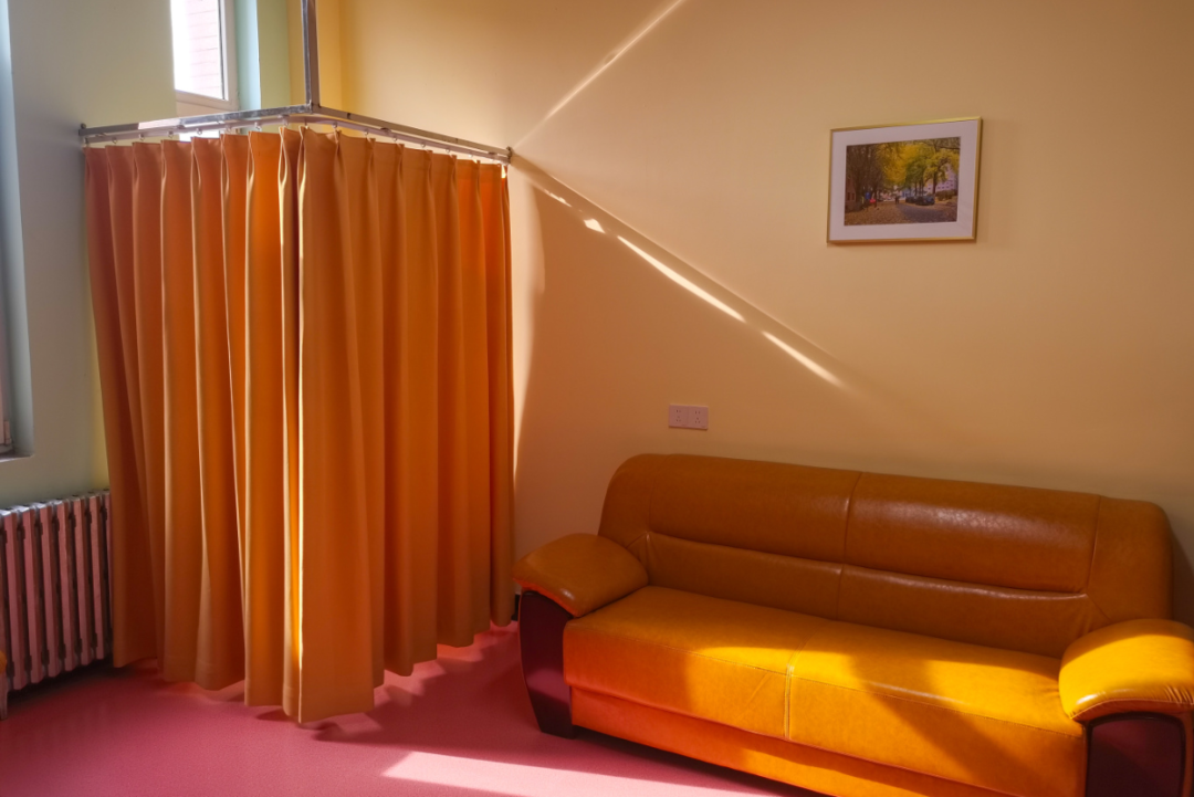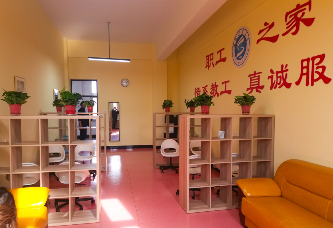为让教师在课间有一个舒适温馨的小憩之隅,学校相关职能部门通力合作,在教学楼内重新升级改造教师休息室,其中,特设女教师专用休息室。