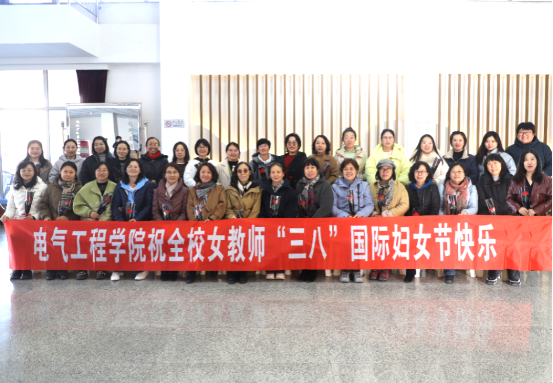 电气工程学院组织举办知识问答活动,并为女教师们发放鲜花礼品。