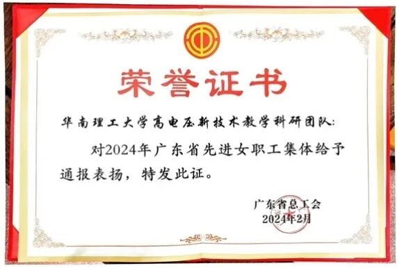 华南理工大学高电压新技术教学科研团队获此荣誉,是对学校在科学研究、人才培养、社会贡献等方面工作的充分肯定,彰显出华园女教职工的巾帼力量。先进女职工集体的涌现,亦能够进一步激励广大华园女教职工凝心聚力、发扬成绩,继续在岗位上发光发热,砥砺前行,担当作为,为学校高质量发展和“双一流”建设贡献巾帼力量!