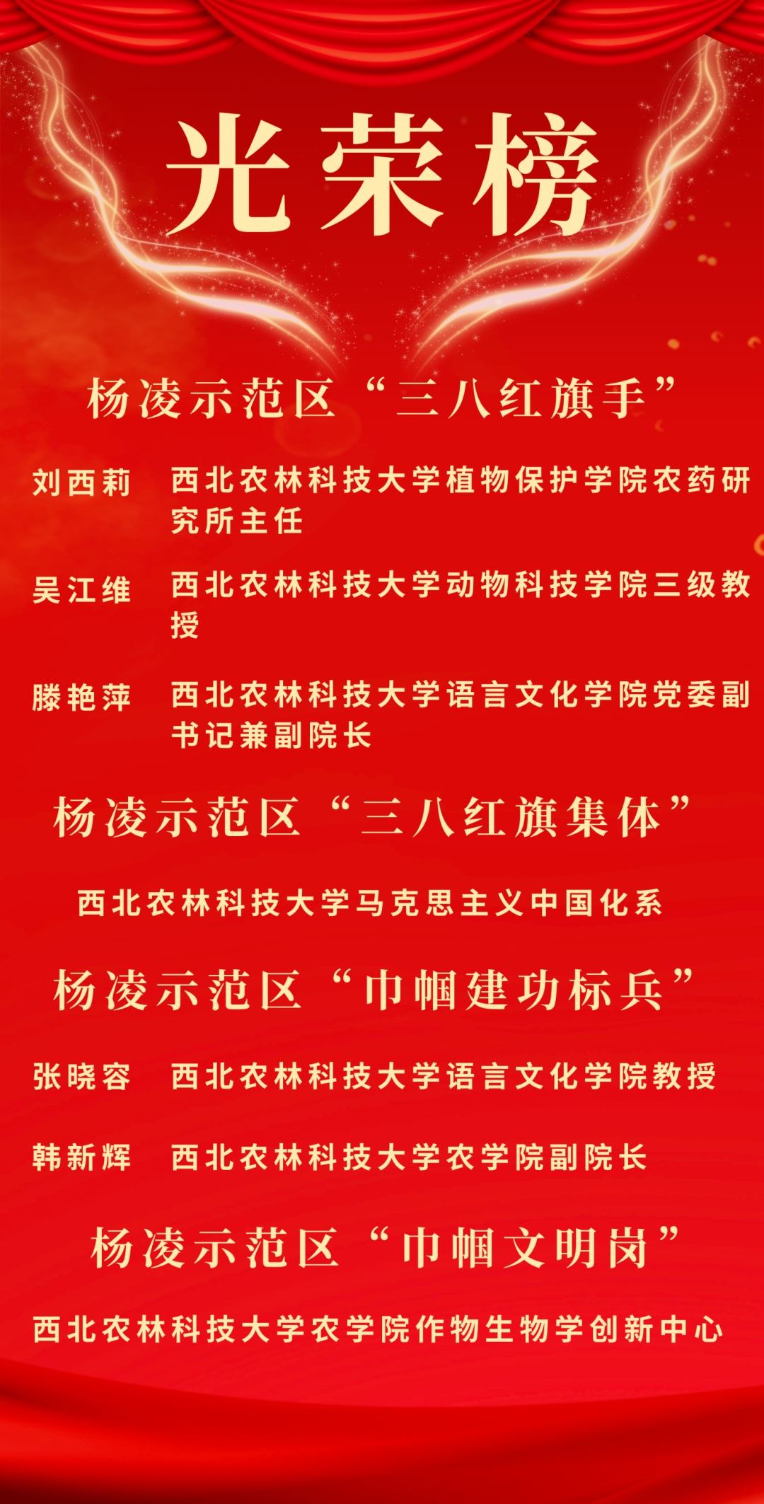 近日,全国妇联公布了2023年度全国三八红旗手标兵、全国三八红旗手、全国三八红旗集体名单。西北农林科技大学葡萄酒学院二级教授、葡萄酒博物馆馆长王华被授予“全国三八红旗手”称号。