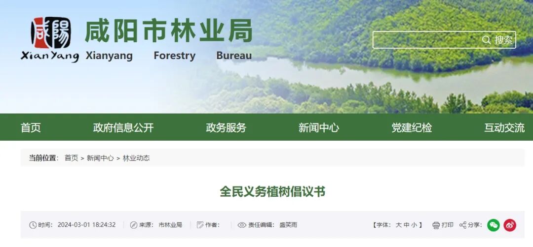 三月的咸阳,春回大地,万物复苏,处处生机盎然。为进一步优化我市生态空间,提升生态文明建设水平,迅速掀起春季植树造林新高潮,在第46个植树节来临之际,我们谨向广大市民、各界人士、各界朋友发出如下倡议: