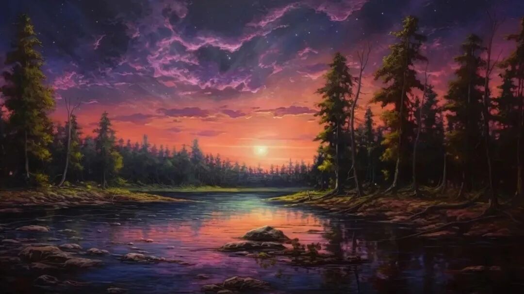 【AI数字艺术】水彩油画风格森林河水插画图