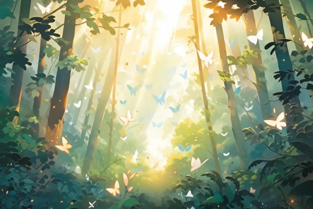 【AI数字艺术】AIGC·丛林里的光 抽象背景插图
