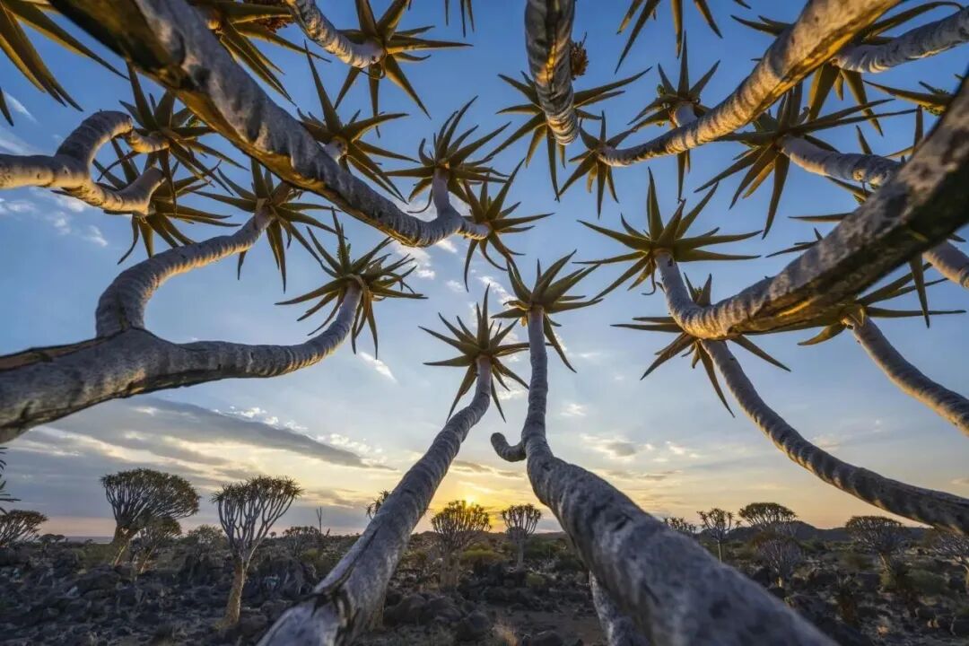 纳米比亚日落时的箭袋树森林