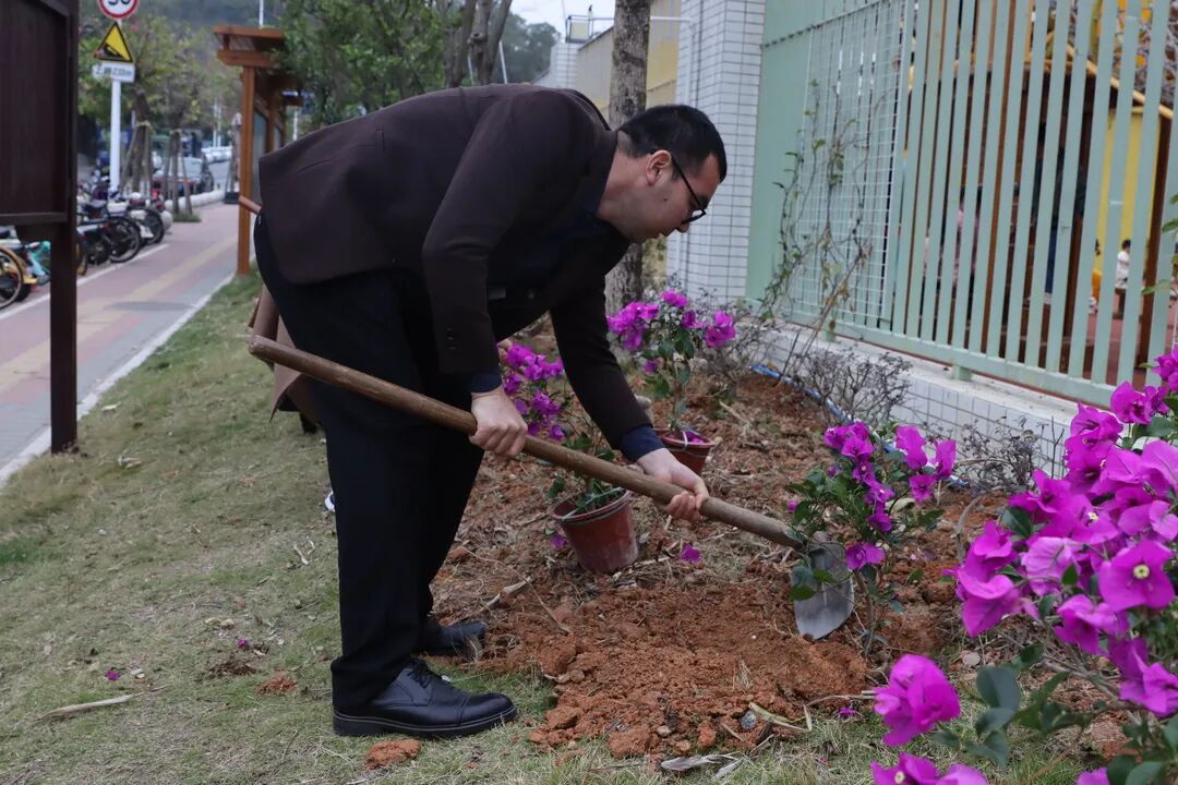 在这个万物复苏的季节,为落实好省、市、区关于绿美广东生态建设的工作部署,珠海高新区金文幼儿园的老师、家长和小朋友们热火朝天的开启了义务植树活动。大家热情高涨,干劲十足,挥揪铲土、扶苗填坑、培土浇水,每一道工序都做得认真细致,现场繁忙有序。经过大家的共同努力,种下的树迎风挺立,为幼儿园增添了无限的生机和活力。