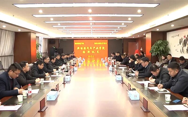 揭牌仪式由高新区党工委副主任孙明恒主持。揭牌仪式前,淮南师范学院党委委员、副院长周晓宏介绍学校与汽车相关专业办学基本情况。他指出,学校坚持育人为本、产业为要、产教融合和创新发展,瞄准与地方经济社会发展的结合点,不断优化专业结构、增强办学活力,探索教育链、人才链和产业链、创新链有效衔接机制,构建人才培养与新能源汽车产业集群联动发展机制。他表示,建设与地方政府、行业企业等多主体共建共管共享的新能源汽车产业学院,既是培养适应和引领现代汽车产业发展高素质应用型创新人才,推进新工科建设再深化、再突破的关键举措,也是实现计算机、电子和人工智能等学科专业交叉融合,适应汽车“新四化”发展的必然要求。学校将通过人才培养模式重构、服务产业专业群建设、产学研深度融合、创新人才培养路径等强有力的举措,努力培养专业知识扎实、工程实践卓越、拿来即用的新能源汽车专门人才,助力安徽省和淮南市新能源汽车现代产业高质量发展。