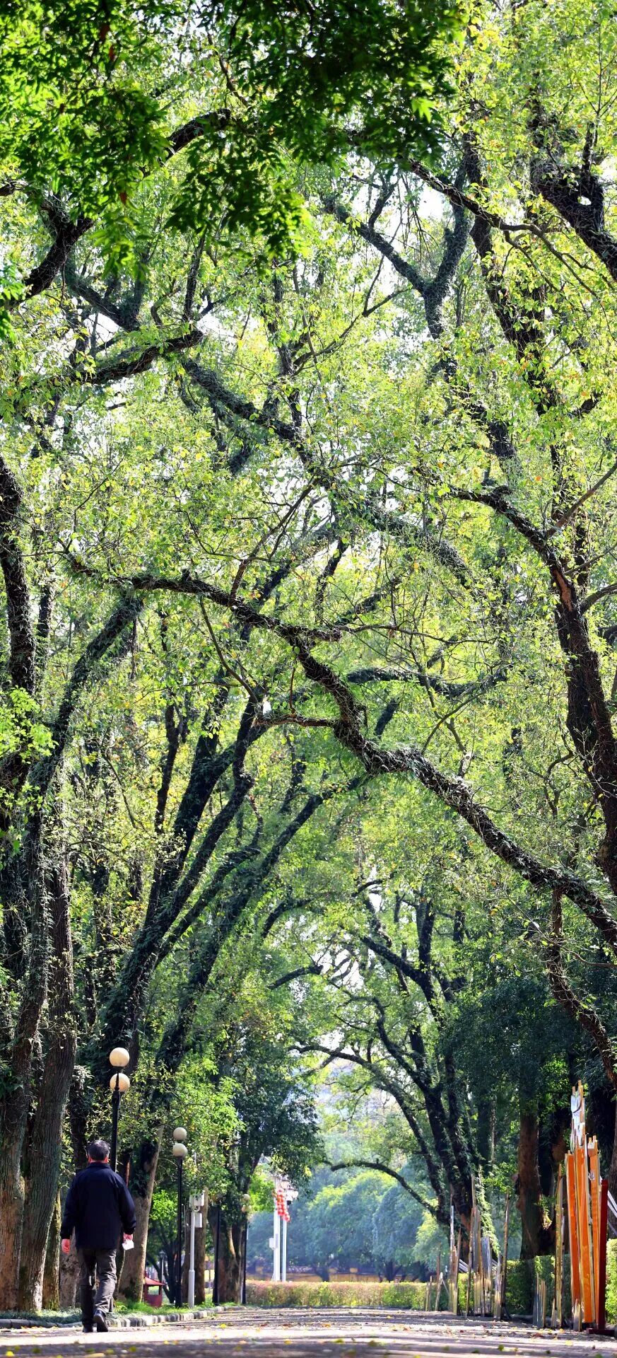 明媚春光透过枝叶洒下斑驳光影