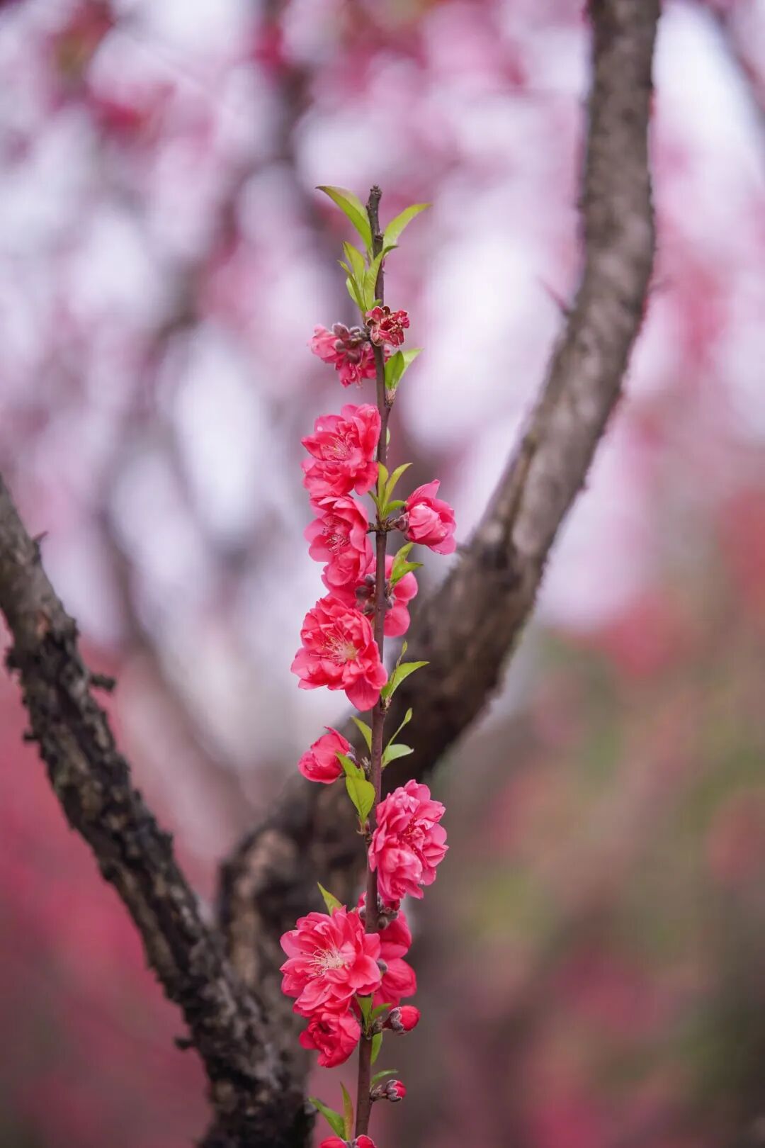 一个个芽苞吐出嫩叶,一簇簇桃红点缀枝桠