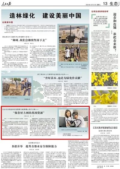 今年的政府工作报告提出“建设人与自然和谐共生的美丽中国”。开展全民义务植树是推进国土绿化、建设美丽中国的生动实践。今天是我国第四十六个植树节,在这生机盎然的春日,《人民日报》推出特别报道,讲述我校园林学院马晓燕教授守护古树、建设美丽中国的故事。