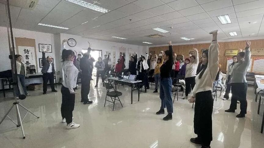 3月6日,学校举办“身心健康进行时”讲座,邀请北京体育大学体育养生教研室杨玉冰教授为大家介绍慢性病的成因和危害、运动促进健康的科学依据等健康知识,并现场教学,带领大家学做养生操。参加活动的女教职工在运动中放松身心,体验养生操带来的快乐。