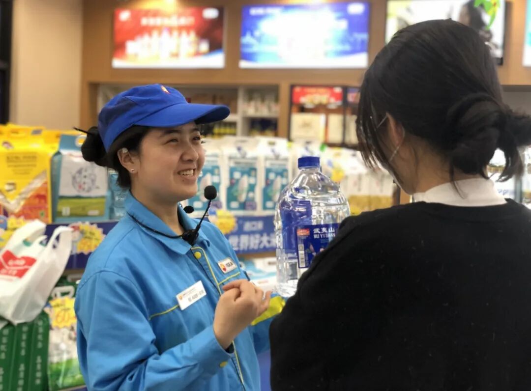 3月14日,在中国石油湖北销售武汉盘龙大道加油站,员工从进货、销售、保存各环节,向顾客介绍着中国石油自有品牌武夷山饮用天然矿泉水。