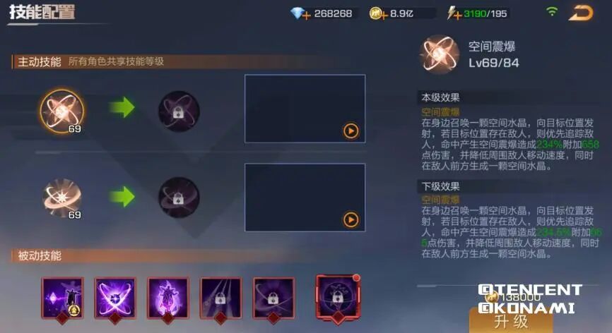 空间震爆:在身边召唤一颗空间水晶,向目标位置发射,若目标位置存在敌人,则优先追踪敌人,命中产生空间震爆,并降低周围敌人移动速度,同时在敌人前方生成一颗空间水晶。