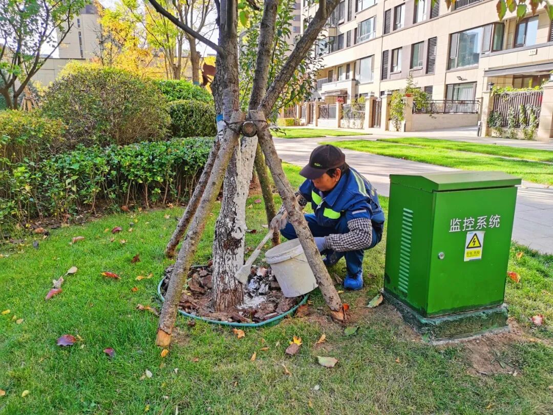 ▲招商积余东北公司的园林“美容师”们全员出动,开展树木涂白养护、草坪落叶清理、时令花草浇灌等行动,促进苗木发芽、返青,为园区增添绿色春意。