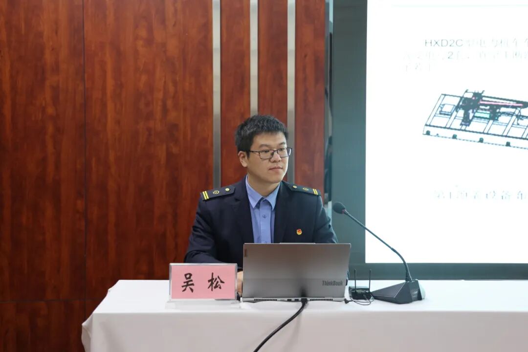 侯马北机务段团委书记吴松围绕《电力机车基本构造》,以HXD2C型电力机车为例,从车顶设备、司机室、行走部、机械间等方面分享交流了电力机车基本构造业务知识。