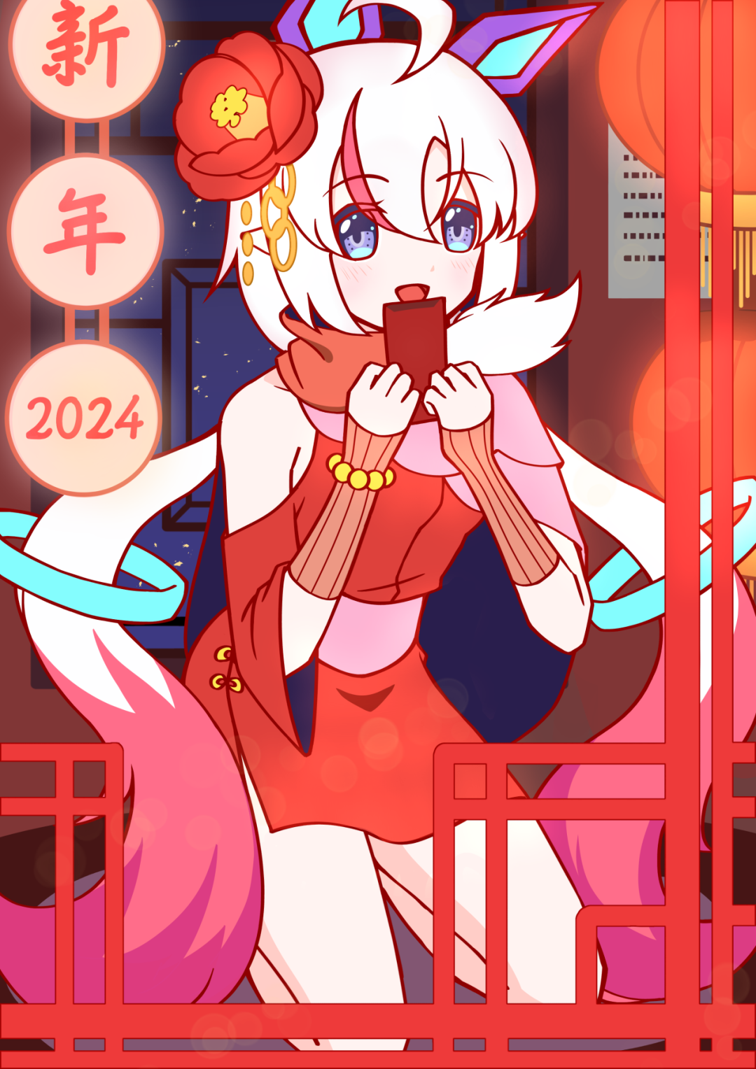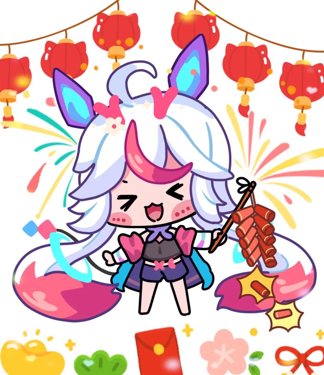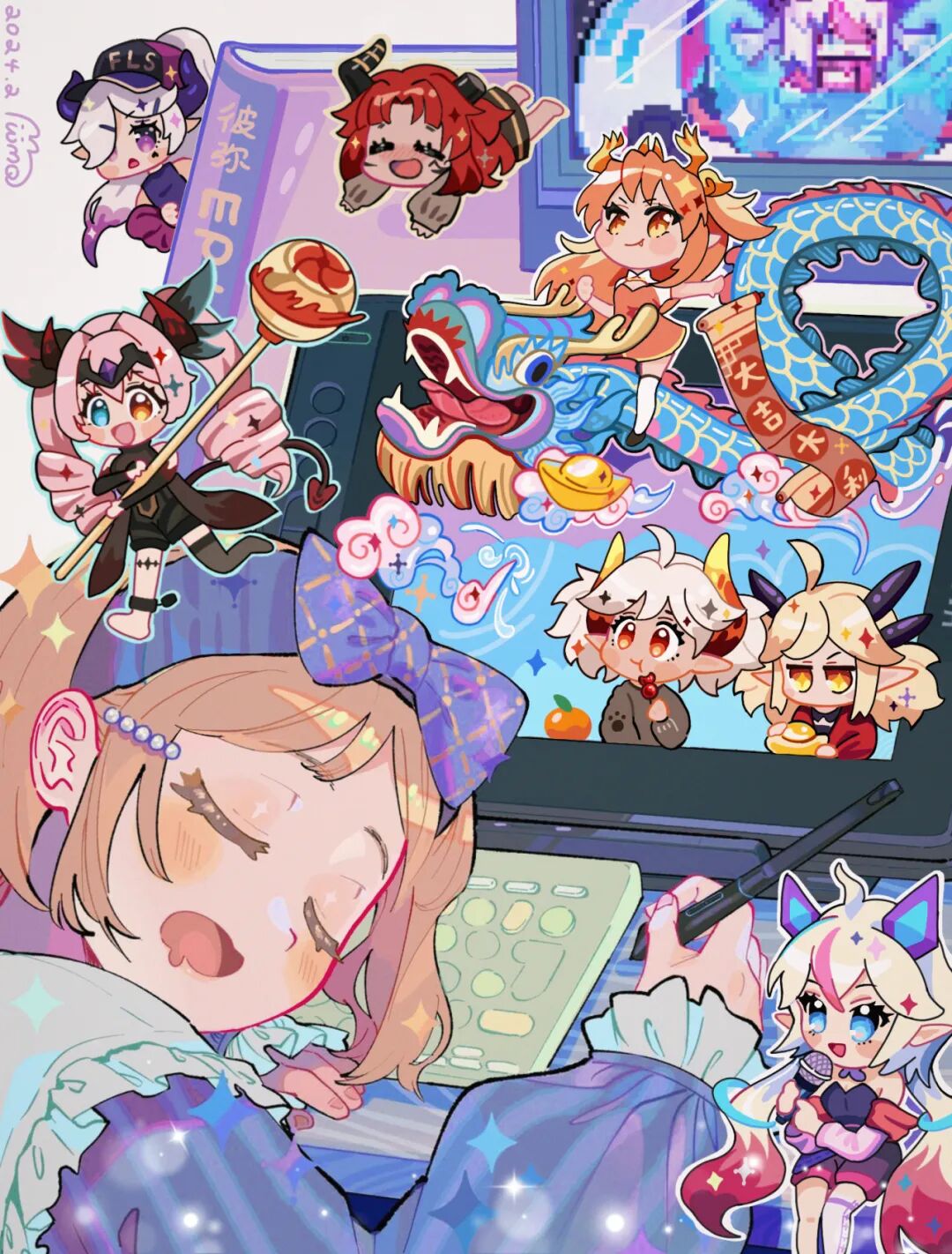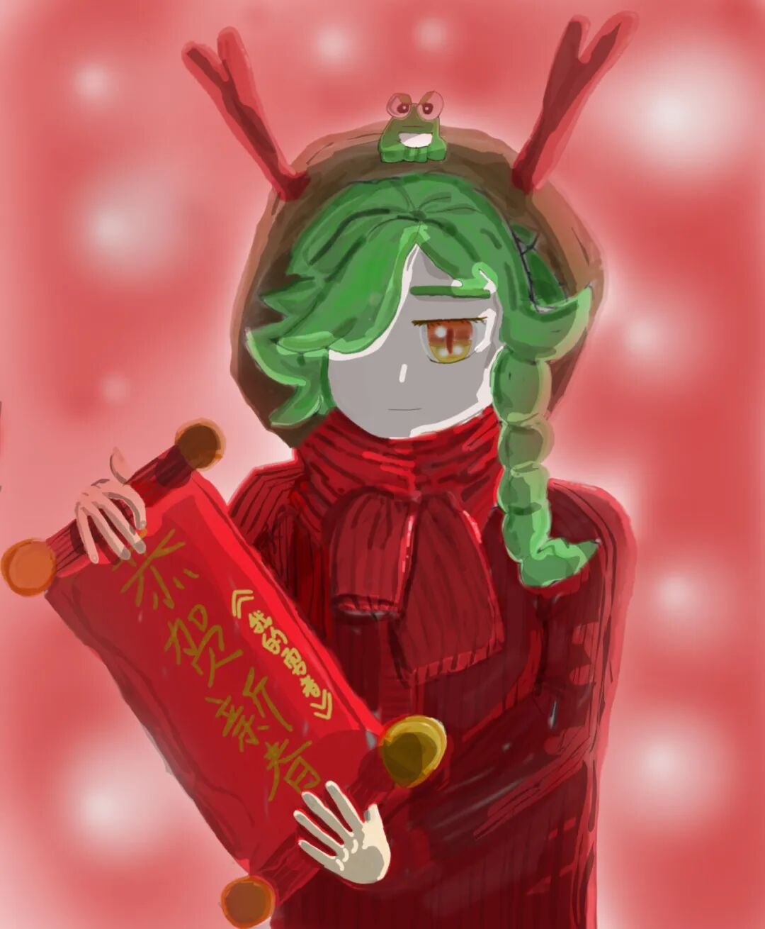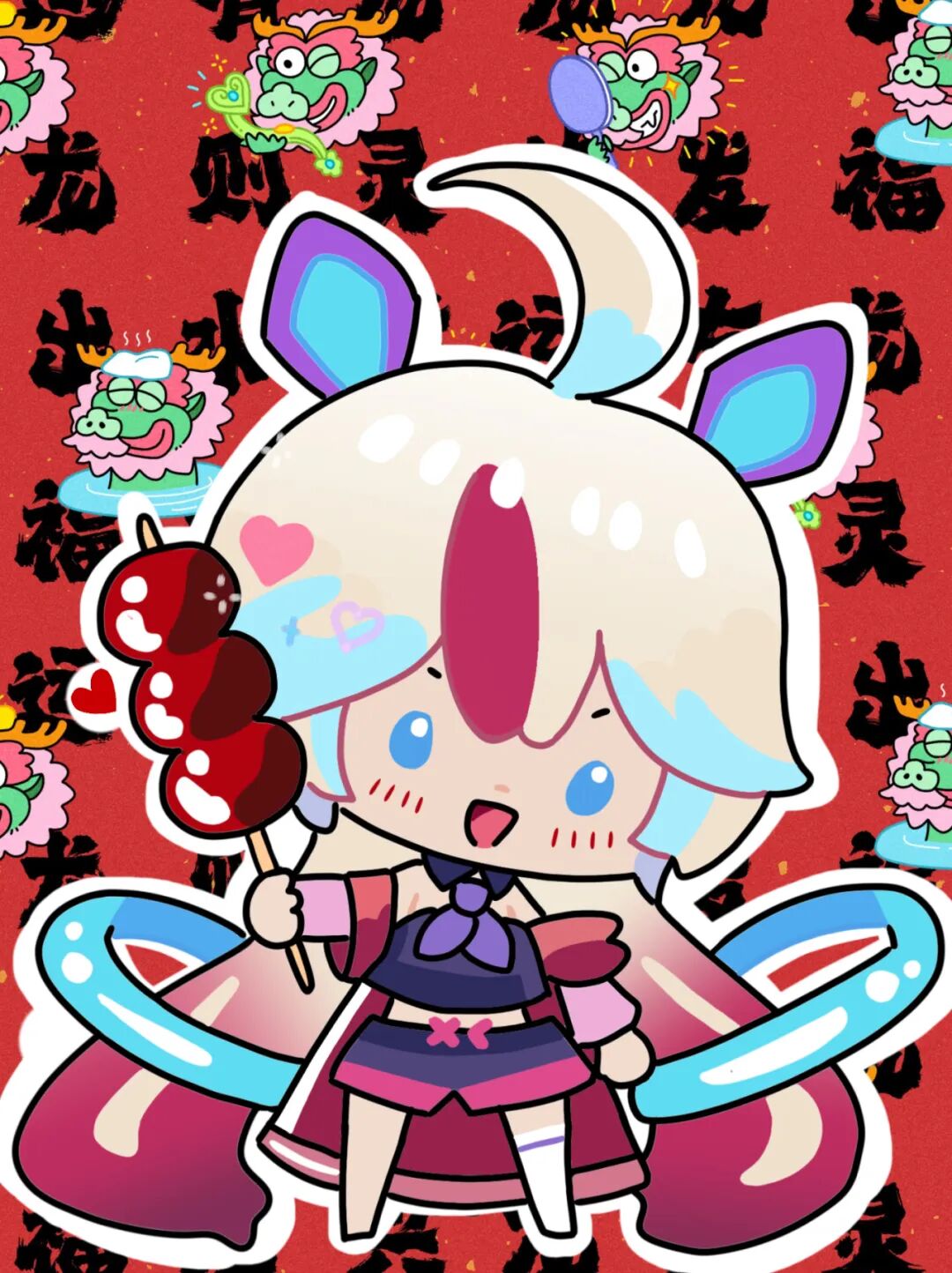 评委点评:很可爱的Q版!精准把控了亚斯塔禄不同状态下的形象特点。红色背景非常有过年氛围,很适合做红包呀!