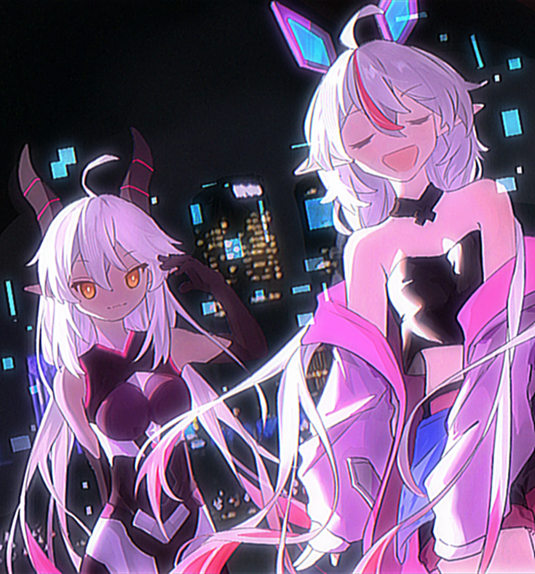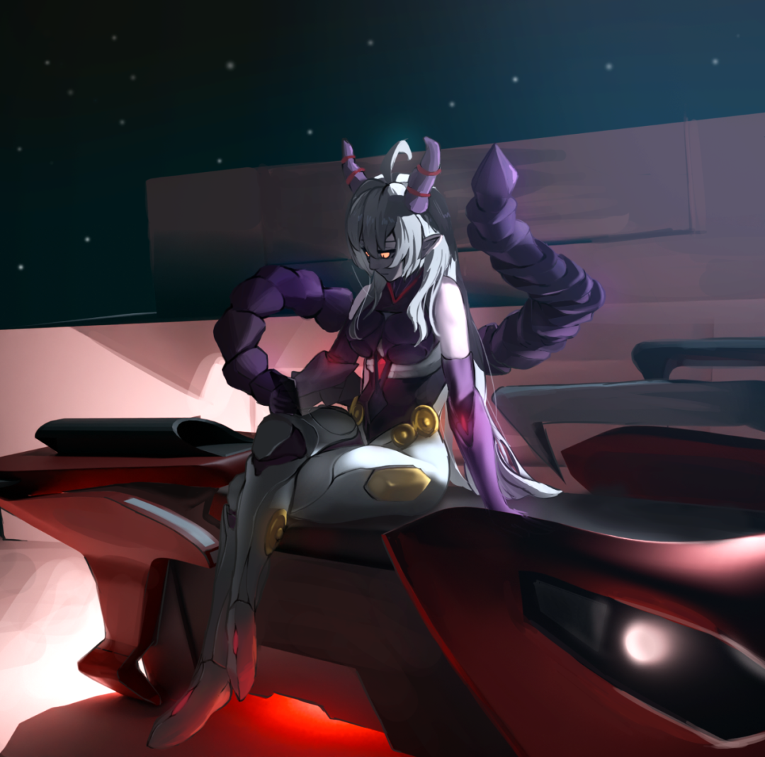评委点击:非常有氛围的一幅作品!蒸汽波风格和亚丝塔禄的设定主题相性很棒!人物肢体语言很生动,背景也处理得很好~