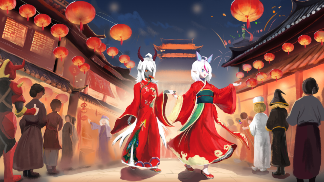 评委点评:非常专业的水平,饱满的构图,质感的刻画非常到位,魔女们的表情生动又可爱,背景元素丰富,很有新年的氛围!!
