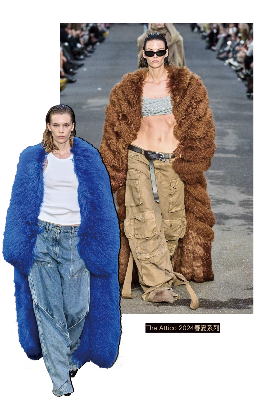 The Attico 2024 春夏系列为我们展现不一样的风格,超大的毛绒外套搭配慵懒的实用工装裤塑造了假小子般的冷静和街头。在热辣的视觉效果上又多了一丝飒爽,从引人注目的设计到无可挑剔的工艺,品牌的方方面面都证明了致力于突破界限和重新定义时尚规范。