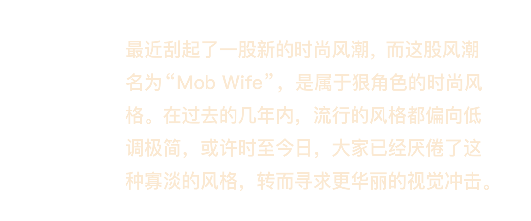 该系列是对个人风格的庆祝,鼓励个人拥抱自己的独特性并大胆表达自己,也与“Mob Wife”所要传达的精神理念大为契合。