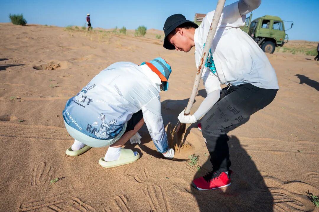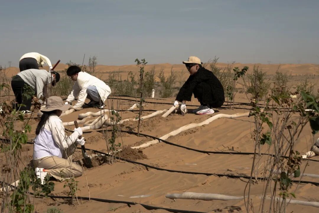 “我曾听过‘六老汉’三代人治沙造林的感人故事,来到沙漠,我们想寻找到底是什么样的精神,支撑着他们书写下从‘沙逼人退’到‘人进沙退’的壮丽篇章。”2023年起,团队的实践内容不仅仅局限于挖沙种苗,更关注到了“治沙精神”的内涵和传播。