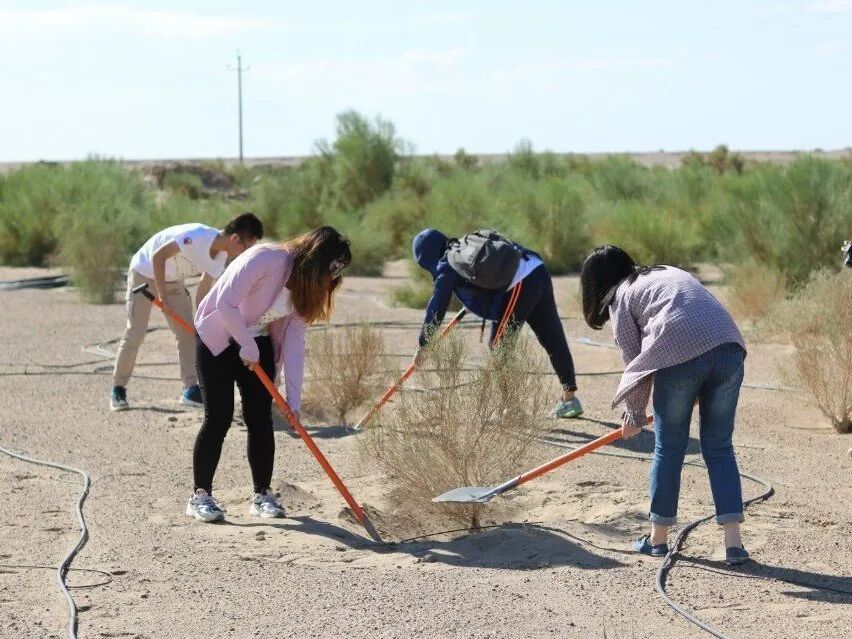 从2014年开始,每年的暑假,南航航空学院“绿勤行”团队社会实践团队,都会从南京奔赴甘肃省民勤县腾格里沙漠,开展防风固沙育苗工作。十年间,他们完成了千余亩、10余万株梭梭幼苗种植,将梭梭成活率从60%提升到95%,他们立志“把梭梭种在祖国大地,把故事讲给更多人听”。