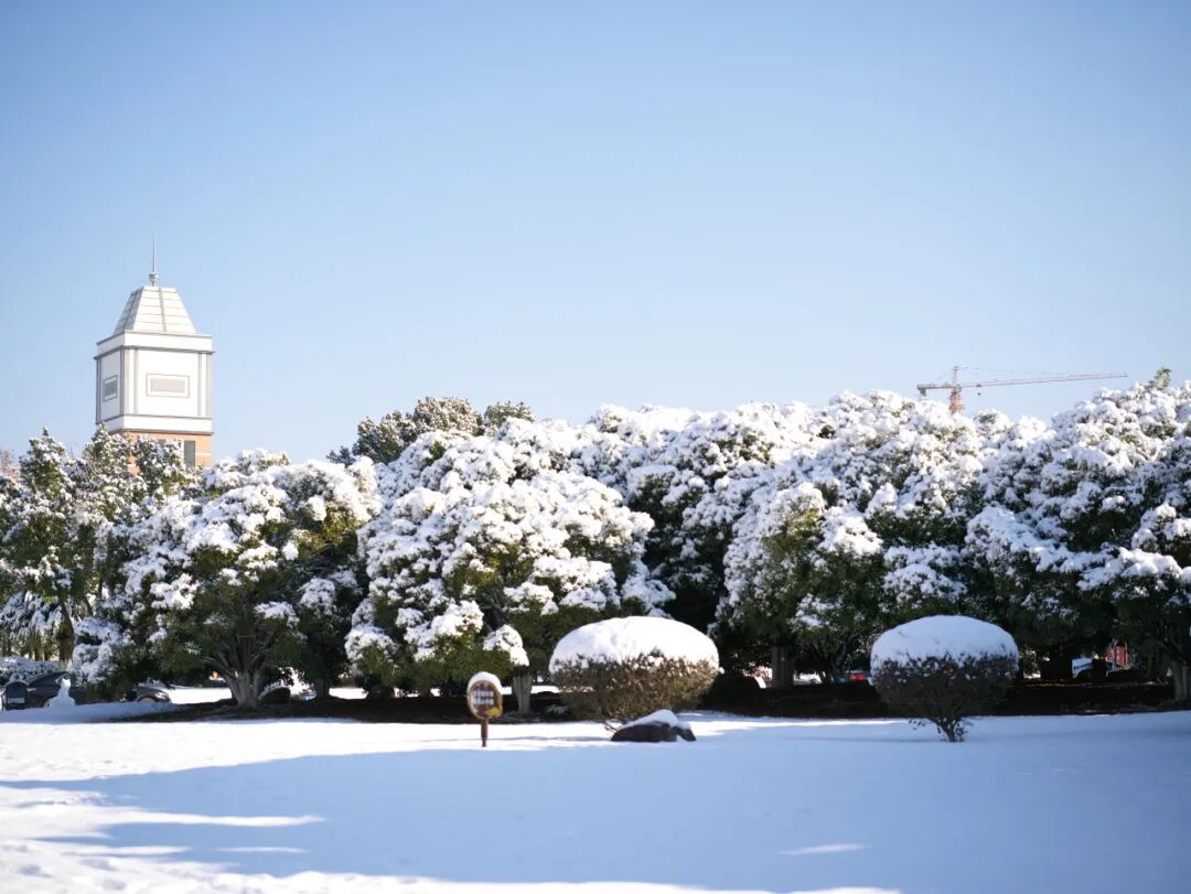 同心楼前的桂花林,同样是建校50周年之际植下的。50棵桂花树,寓意50年辉煌的足迹,步步如桂花金黄流芳。如今的桂花林枝叶茂密交错,树冠圆润而不高耸,连接成春意的浪花,酝绿藏光,荏染柔木。在金秋时节,更是丹桂飘香,撒落满林的金黄。