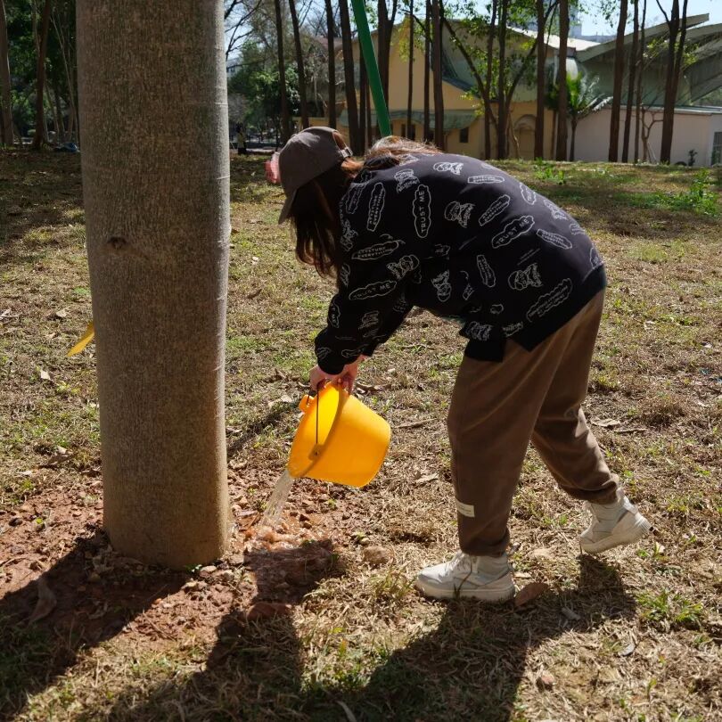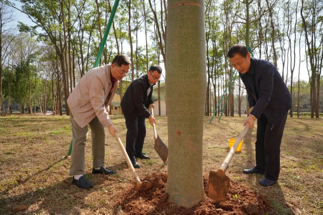 校长张强、党委书记兼督导专员刘友坤,校长办公室、党委组织部、总务基建处等相关部门负责人参加活动。活动伊始,师生们先将认养的丝木棉进行挂牌编号。同学们在总务基建处老师的指导下,分组合作,他们有的负责挖坑,有的负责将树苗搬运到翠湖沿岸等区域,还有的负责培土、施肥、浇水。虽然有点累,但大家脸上洋溢着满足的笑容和成功的喜悦。他们期待在今天留下一份“春”的寄托与希望,在未来收获一份“夏”的翠绿与荫凉。