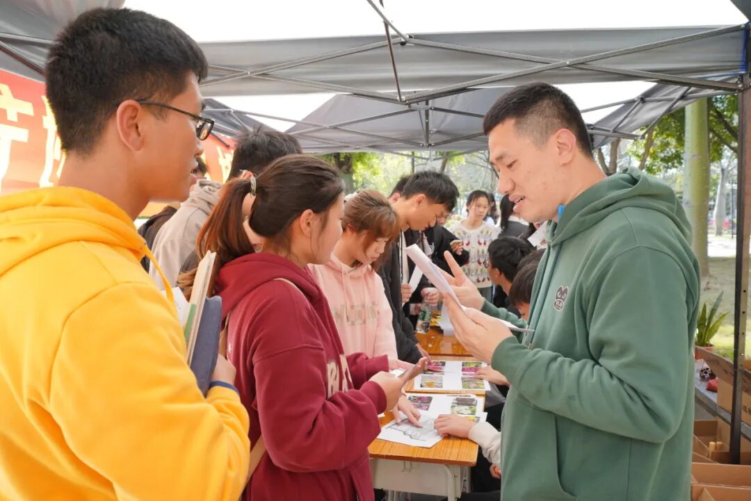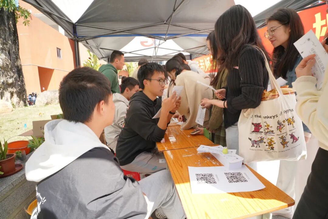 图书馆广场上,同学们踊跃地参与关于植树知识的趣味小活动,通过回答植树小知识、看照片识花等方式获得盖章。当集满3个奖券后,可在花瓶绘画和合种多肉中获得其中一个奖励。选择合种多肉的同学,在多肉植物中任意选择2棵后,将其轻轻地放进土里。在阳光下,多肉的叶子,像嵌满了金边的翡翠,闪烁着生命的光泽。同时活动还倡导用旧的花盆去栽种植株,同学们只要自带小花盆,凭借1张奖券就能够任选1株多肉进行种植,让多肉在过去的土壤中,生长出新的生命。