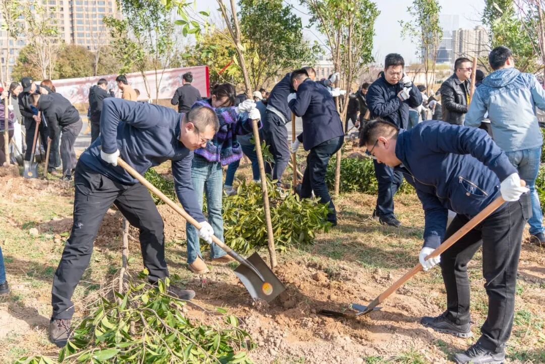 “党建引领高质量 植树增添长大绿”