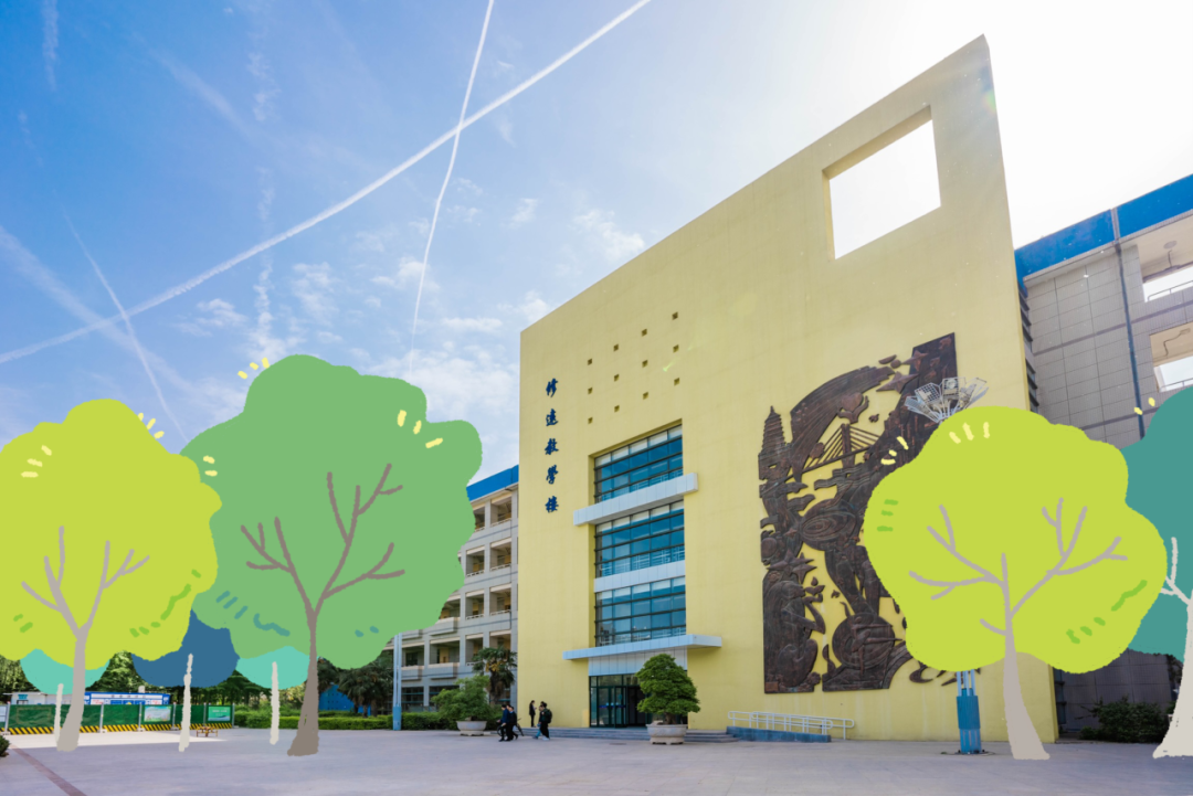校园小径边,教学楼旁
