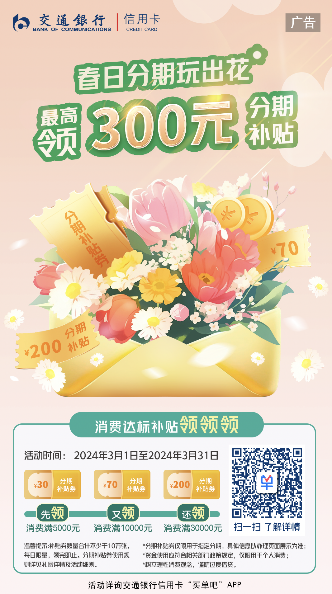 春日分期补贴来袭!最高可领300元分期补贴券>>