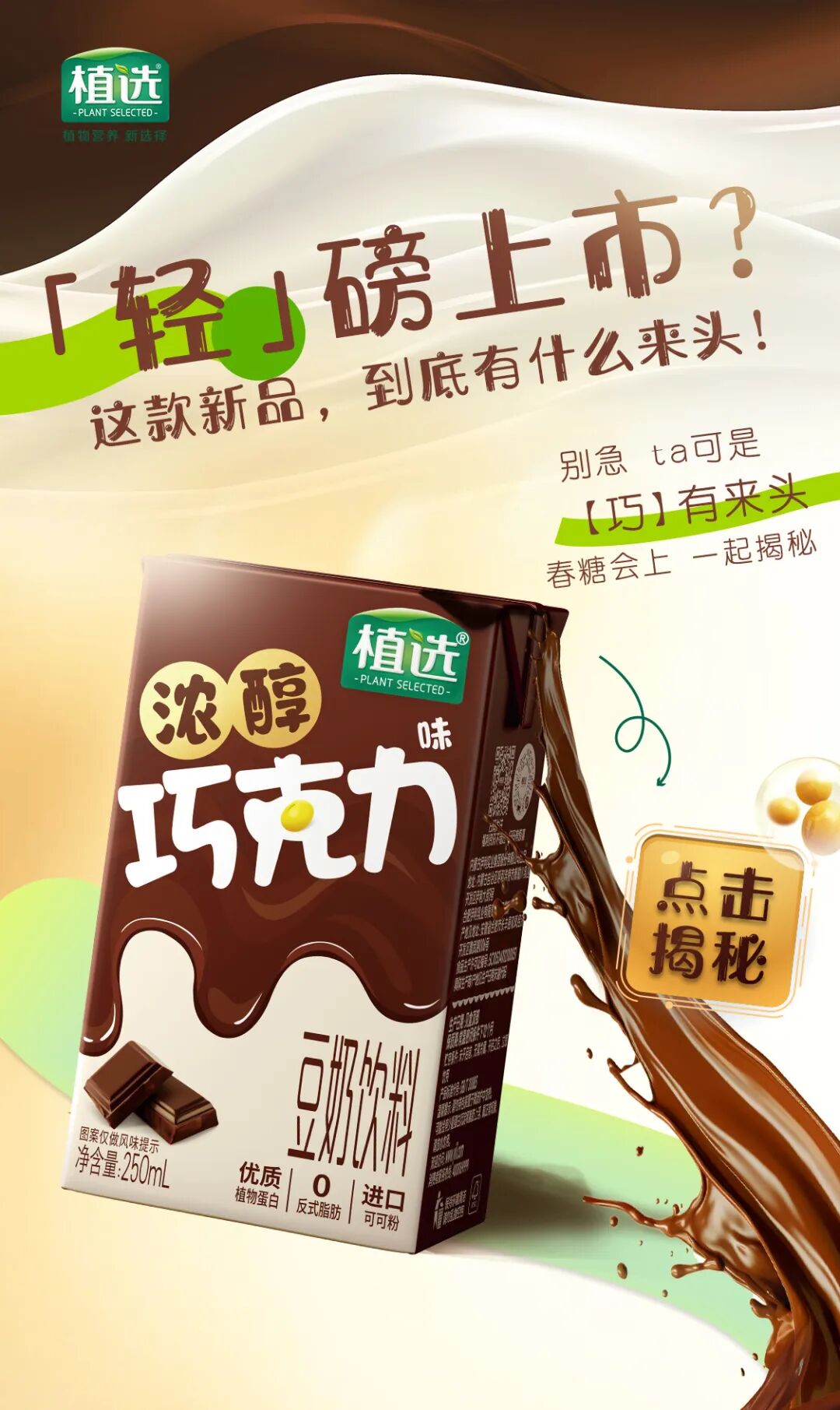 摘要:植选浓醇巧克力口味豆奶上市咯!美味轻负担,好喝就请多多多喝点!
