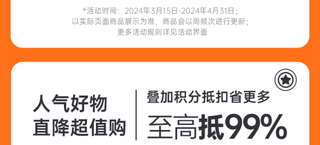 摘要:人气好物可用积分抵扣,至高可抵99%