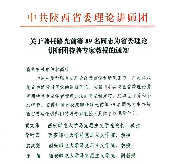 学校按照师生比不低于1:350的比例核定专职思政课教师岗位,落实生均40元思政课建设专项经费,充实和优化马克思主义学院人才队伍和师资力量。马克思主义学院拥有国家级学会理事6人,省级学会副会长6人,中共陕西省委组织部党性教育基地特聘专家2人,中共陕西省委理论讲师团特聘教授4人,入选陕西省宣传思想文化系统“六个一批”人才1人、陕西高校人文社会科学“青年英才支持计划”2人、“西邮新星”团队支持人才计划1人。入选陕西高校思政课省级名师工作室。入选中共陕西省委理论讲师团、党史学习教育省委宣讲团10余人。学院辅导员入选2022年全国“最美高校辅导员”。获评陕西省优秀共产党员1人,全省基层理论宣讲先进个人1人,陕西高校思政课优秀教师1人,学校“四有好老师”3人。