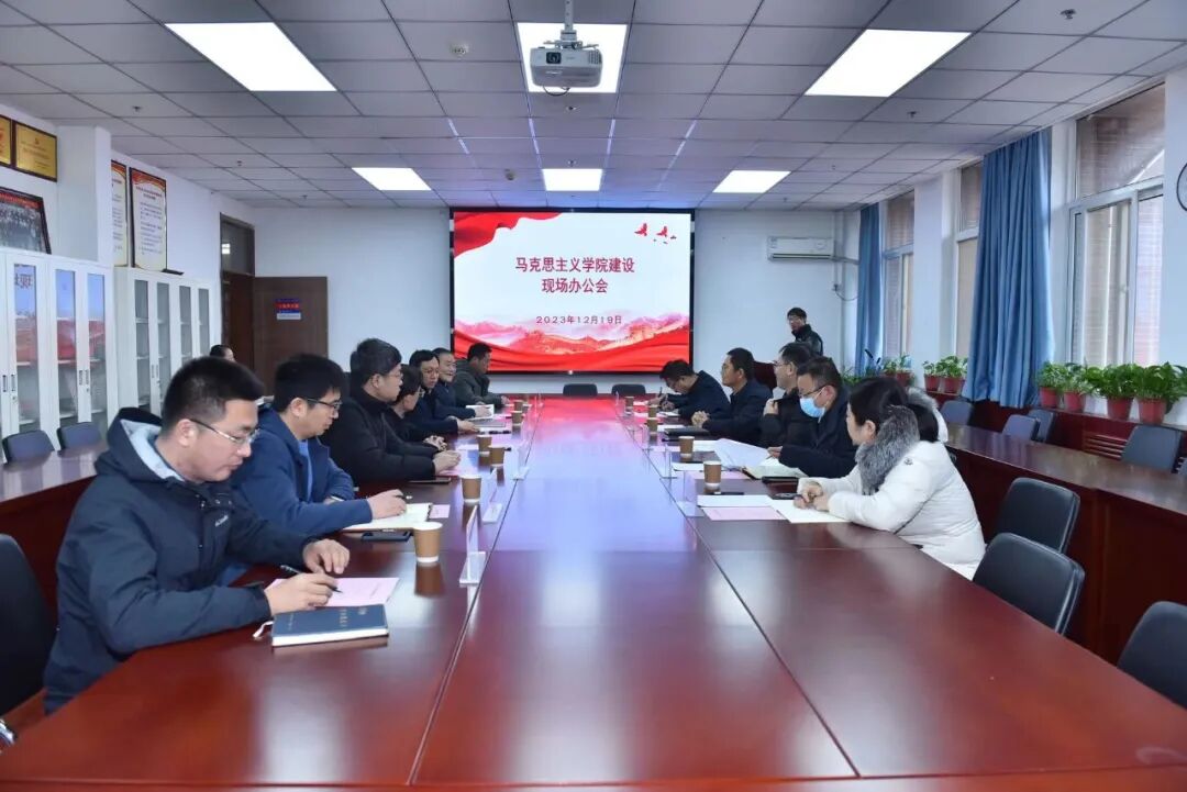 坚持系统统筹观念,持续改进理念,校党委会、校长办公会每学期专题研究思政课建设,校党委书记、校长每学期到马克思主义学院召开现场办公会,校党委书记联系马克思主义学院,督促指导落实省级重点马院建设标准和思政课建设要求。学校党委落实马克思主义学院建设的主体责任,形成了党委统一领导、党政齐抓共管、有关部门各负其责、协同配合,社会力量充分参与的“红色领航+多维协同+合力育人”工作格局,大力推进“大思政课”建设,取得明显成效。