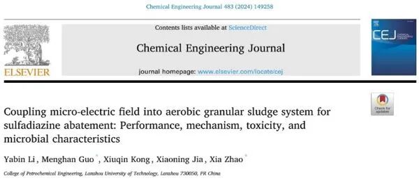 近日,学校石油化工学院环境水生态安全与水质保障协同创新团队在好氧污泥颗粒化除污染方面取得新进展。研究成果以“Coupling micro-electric field into aerobic granular sludge system for sulfadiazine abatement: Performance, mechanism, toxicity, and microbial characteristics”(DOI:10.1016/j.cej.2024.149258)为题,在工程技术领域TOP期刊《Chemical Engineering Journal》(中科院一区,影响因子15.1)发表。团队负责人赵霞教授为通讯作者,石油化工学院为论文唯一作者单位。