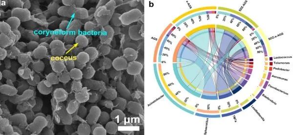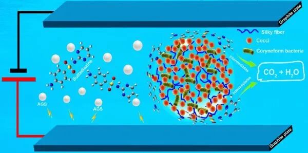 当前,随着城镇化进程加速和工业化发展,水处理面临着巨大挑战。好氧颗粒污泥结构由外而内分为好氧区、缺氧区和厌氧区,这种独特的结构赋予其同步矿化有机污染物、脱氮和除磷能力,在水处理方面潜力巨大,同时颗粒污泥存在培养周期长、系统不稳定等瓶颈。针对此问题,团队将微电场引入好氧颗粒污泥系统,有效缩短了污泥造粒周期,增强了颗粒稳定性。通过微电场对微生物选择,提高了耦合系统对抗生素废水的处理效能,研究成果具有广泛的应用前景。