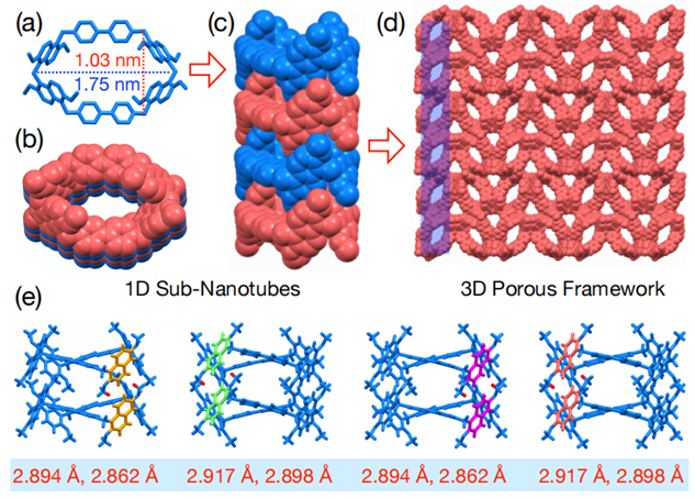 这类晶态多孔材料在环境污染物吸附、化工原料的精准吸附与分离等领域具有良好的应用前景。该研究工作不仅丰富了超分子化学以大环主体为核心的研究内容,还为基于大环芳烃的晶态多孔材料的制备提供了新的研究思路。