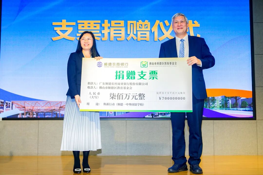 据了解,顺德一中外国语学校作为一所百年名校,大部分建筑是上个世纪90年代所建,学校存在部分急需改善的区域。本次顺德农商银行向一中外国语学校捐赠的700万将用于学校教学设施的更新、校园环境的改善等方面,计划对一中外国语学校的园林绿化、体育馆、功能室等进行升级改造,通过美化环境,消除安全隐患,优化空间使用。此次捐赠将有力推动学校的发展,提升学校的办学水平和影响力,为学校的发展注入新的活力。