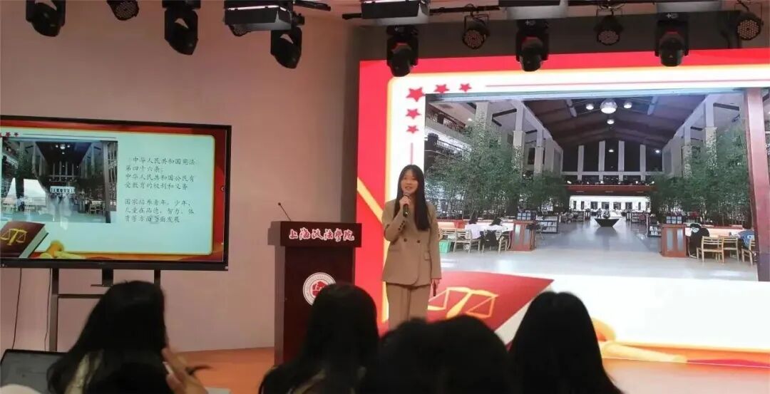 2023年12月第一周正值我国第六个“宪法宣传周”,上海政法学院举办的一系列“学宪法、讲宪法”活动也在学生中间铺陈开来。12月4日当天,以“循法治之光,燃青春之火”为主题的第十个“国家宪法日”主题升旗仪式在操场举行,同学们在国旗下开展宪法晨读,共同回顾宪法条文,弘扬法治精神,爱国主义教育和法治教育在那一刻交相辉映。12月7日,一场酣畅淋漓的“我与宪法”主题演讲比赛顺利收关,比赛第一名获得者车玉蓉同学“宪法有情,伴吾同行”的演讲,从日常生活的点滴出发,讲述了宪法对人们生活方方面面的保障,论理清晰、情感真挚。