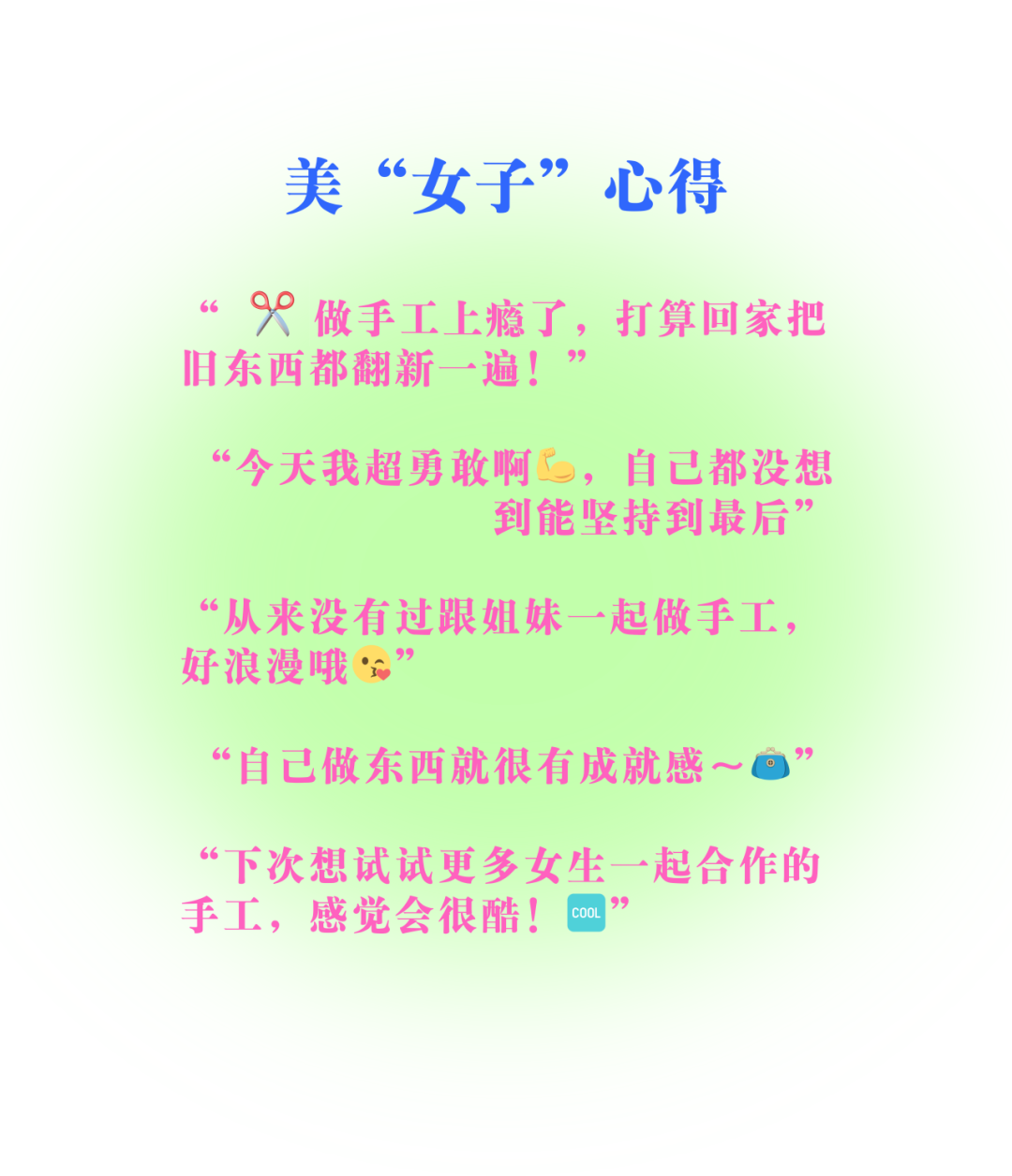 夸夸大会、合作手工、疗愈课堂、REMAKE 秀场……听着就超美 “女子” 的好吧!这么美 “女子” 的周末必须记录一下,现在,我们就带大家一起回到现场,来看美女子们是如何玩转周末趴体的~