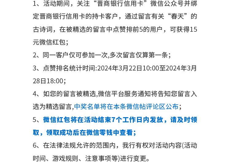 文章内容来源于公众号:晋商银行信用卡,点此可查看原文,内容版权归相关企业所有,本网站仅供交流学习。若涉及版权问题或存在侵权情况,请及时与我们联系,我们将第一时间进行删除处理。