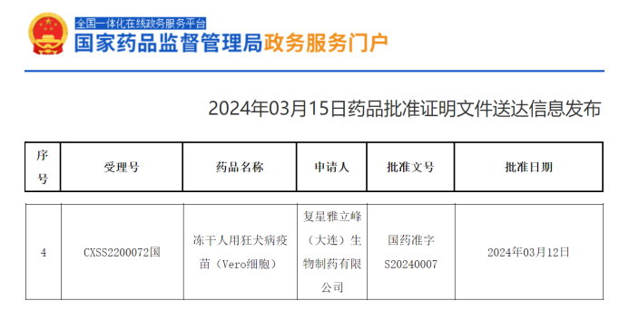 该疫苗为自主研发的预防用生物制品,为冻干注射剂型,用于狂犬病预防。在人用狂犬病疫苗(Vero细胞)制备过程中,复星雅立峰采用不添加牛血清和人血白蛋白的病毒培养工艺;不含抗生素、不含防腐剂、不添加明胶和右旋糖酐等易致敏性冻干保护剂。该疫苗生产使用的CTN-1V毒株,其基因序列更接近目前流行的狂犬病病毒街毒株,临床数据显示,该产品具有很好的安全性和免疫原性,适用于4针法和5针法两种免疫程序。