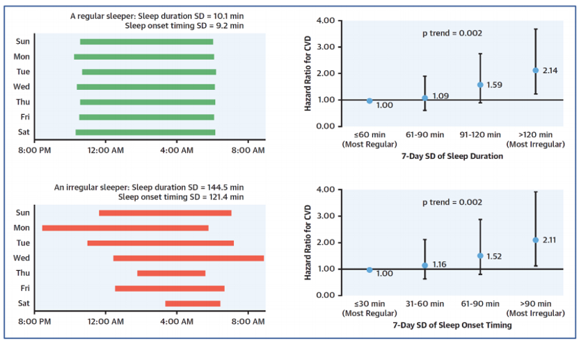 入睡时间和睡眠的规律性也对我们的健康有重要影响。有研究表明,夜间10-11点入睡有利于心血管健康,规律的睡眠有利于降低全因死亡率。