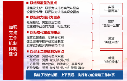 党支部在新时代高校党建示范创建和质量创优工作中,深入学习贯彻习近平新时代中国特色社会主义思想,以党的政治建设为统领,立足立德树人根本任务,对标对表“七个有力”,不断增强党支部的政治功能和组织功能,落实党建重点任务、提升党建工作质量、答好党建核心课题,全力推进党建和事业深度融合,大力提升师道本色、育人底色、科技成色、文化特色、服务暖色,推进学科建设、人才培养、科学研究、服务社会工作高质量发展,形成了党员教育有根有源、党员管理有始有终、党员监督有规有矩、组织师生有板有样、宣传师生有声有色、凝聚师生有心有意、服务师生有行有效的强特色、有示范、可推广的党建工作品牌。