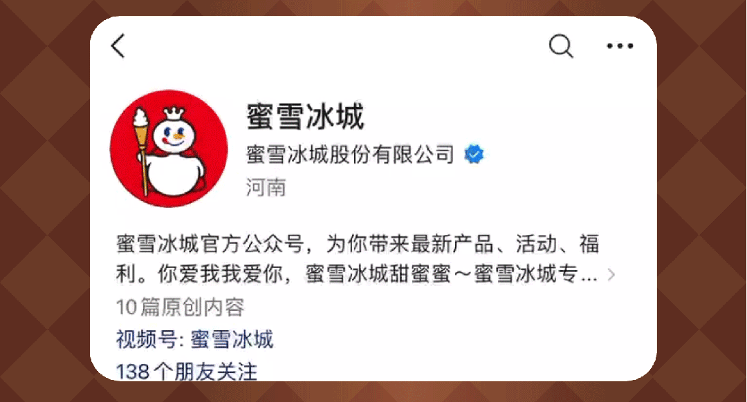 文章内容来源于公众号:蜜雪冰城,点此可查看原文,内容版权归相关企业所有,本网站仅供交流学习。若涉及版权问题或存在侵权情况,请及时与我们联系,我们将第一时间进行删除处理。