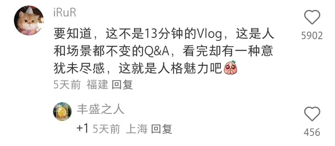 小红书网友@闲敲棋子落灯花 看完恩利Q&A视频后发自内心地感慨道。@iRuR 更是不遗余力地表达了对恩利的欣赏,明明是人和场景都不变的视频,却因为人格魅力而让她有种意犹未尽之感。