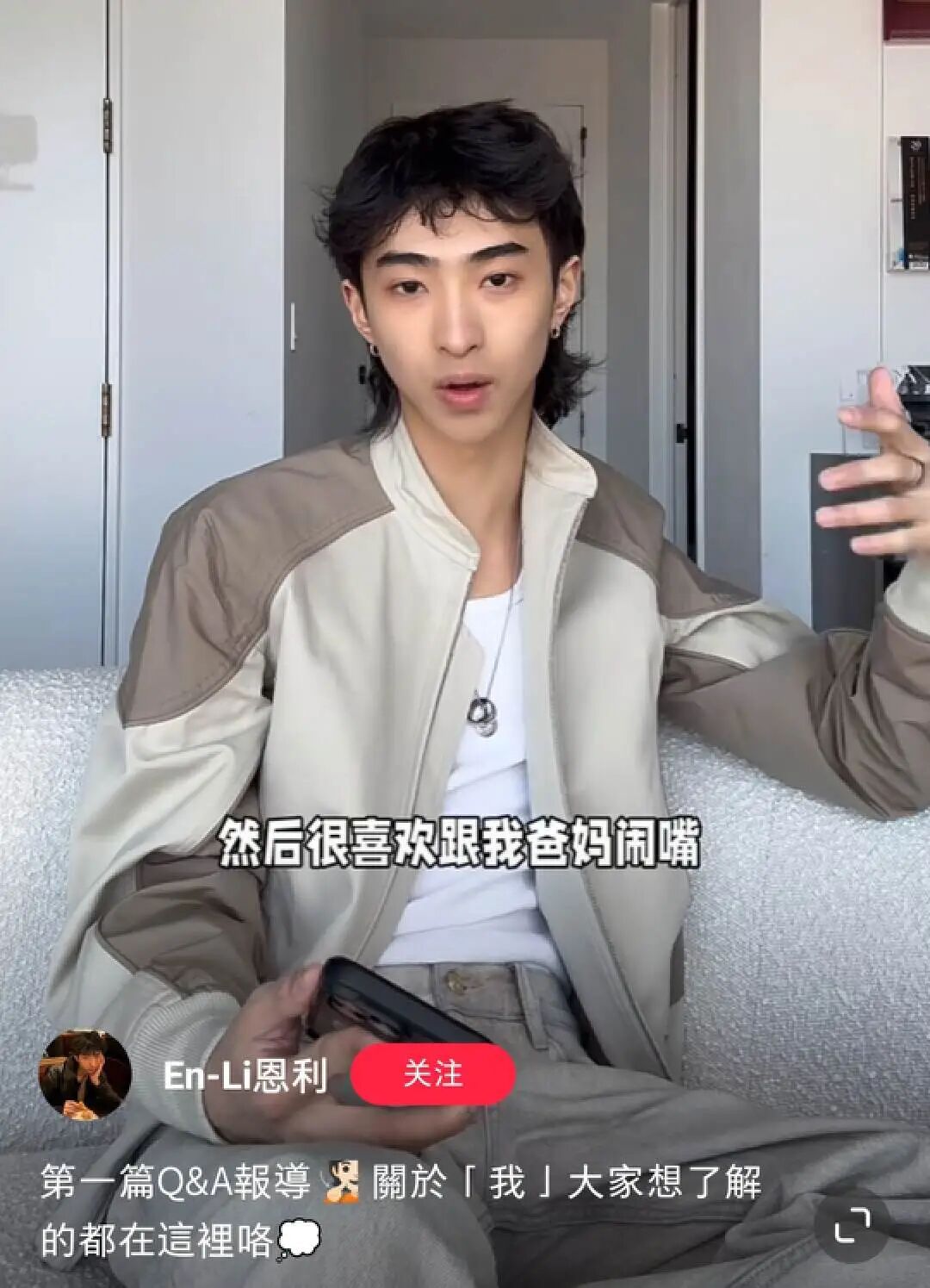 面对小红薯们对于他个人审美观的好奇,@En—Li恩利 从妈妈的公主路线、爸爸的朋克摇滚风对自己的影响,一路谈到自己年少的穿衣经历——从八岁起,他的每一套衣服都是自己搭配的。
